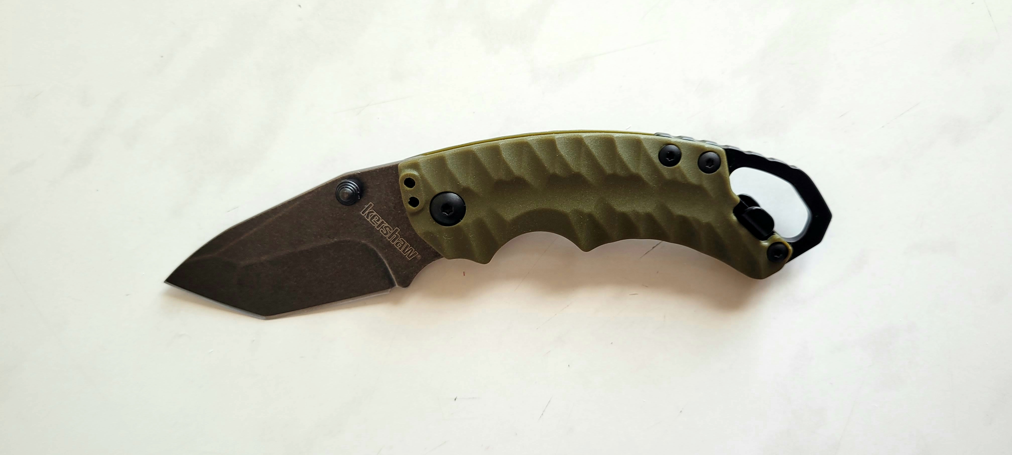 Ох, какой прикольный карапет! Уже пару дней как его получил. Ну, придраться не к чему. Именно то ,что на изображении при заказе. Даже больше. Мой экземпляр идеален. Стандартная кершевская коробка. Внутри- прям вызывающий трепет МАЛЫШ! Легкий и красивый. Не для тяжелы работ. Но, сразу вызывающий некое восхищение. Такой вроде бы брелок. Абсолютно приятный при взятии в руку. И полностью в ней утопающий. Не вызывающий никакого дискомфорта. Текстурированный Джи 10 цвета олива и клинок по центру прям сразу бросились в глаза как по ощущениям, так и по взгляду. Плоская отвертка и двусторонняя открывашка очень гармоничны. При нажатии на шпенек с неким усилием был услышан смачный клац. Клинок-чудо! Танто. Маленький. Не бреющий волосы на руке и при этом легко стругающий бумагу в соломку. АБСОЛЮТНО СИММЕТРИЧНЫЙ! Даже РК! Но насколько приятный визуально. Как и в целом нож в раскрытом состоянии. Плашки тонкие. 1 мм. Лайнер на левом краю клинка. И даже левее. Подпальцевые выемки очень органичны. И обратным хватом в том числе. В реверсе дискомфорт. Но это и понятно учитывая форму рукояти. Открывашка рабочая. Отвертка рабочая. Слегка пришлось подтянуть торксы на рукояти и клипсе. По привычке, не зависимо от производителя. Т6. Центральный Т8. Люфтов никаких. Ни с какой стороны. На кармане нож смотрится как что-то там находящееся и при этом абсолютно не ощущающееся.